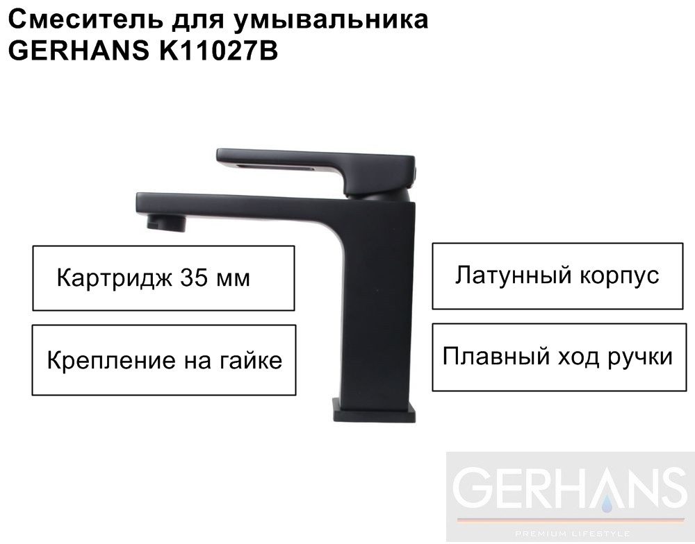 Cмеситель для умывальника GERHANS K11027B, черный