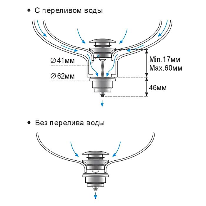 | Диаметр сливного отверстия | Ø 2 2/5 (62мм) |