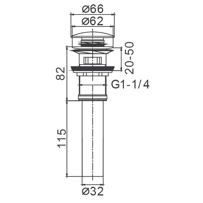 | Диаметр сливного отверстия | Ø 2 2/5 (62мм) |
