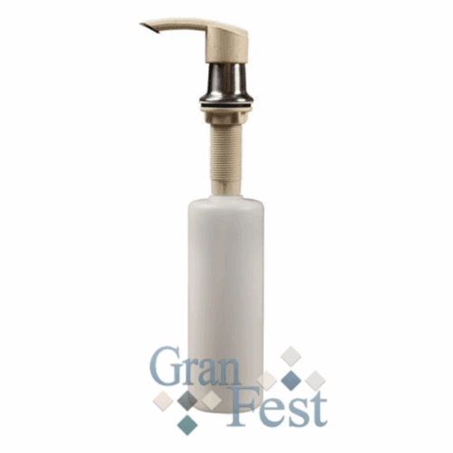 Кухонный дозатор GranFest 001, изготовленный из нержавеющей стали и пластика, соответствует современным стандартам дизайна и высочайшему качеству. Отлично сочетается с белыми мойками из искусственного гранита.
