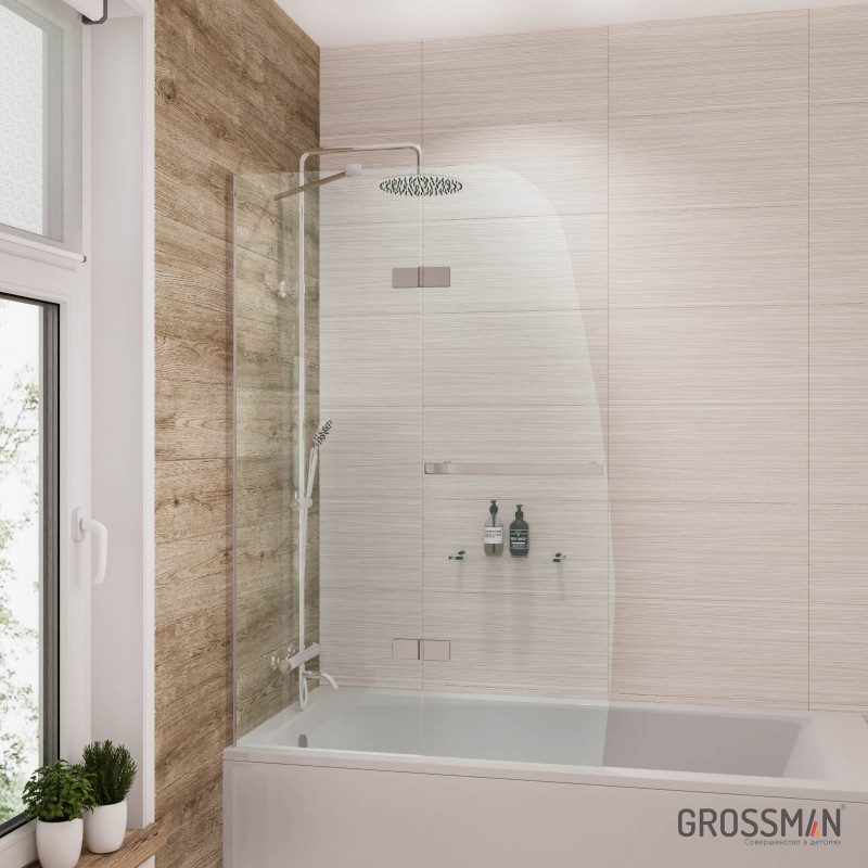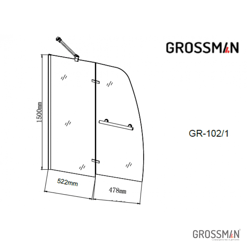 Шторка для ванны GR-102/1, 100*150 стекло прозрачное Easy Clean