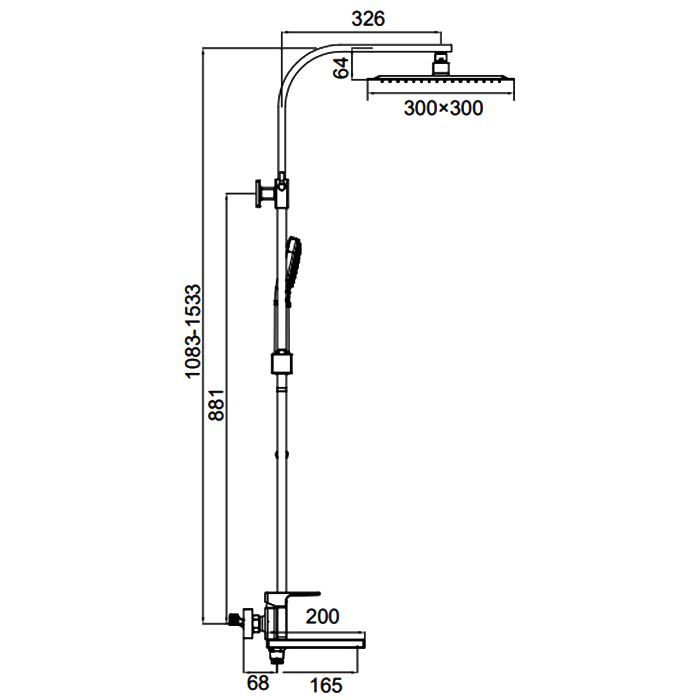 Комплектация | Верхний душ, Держатель для лейки, Душевой шланг, Лейка для душа, Смеситель |