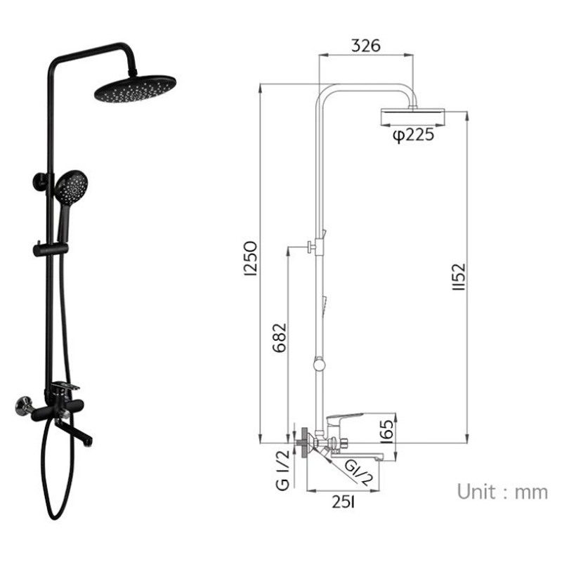 | Комплектация | Верхний душ, Держатель для лейки, Душевой шланг, Лейка для душа, Смеситель |