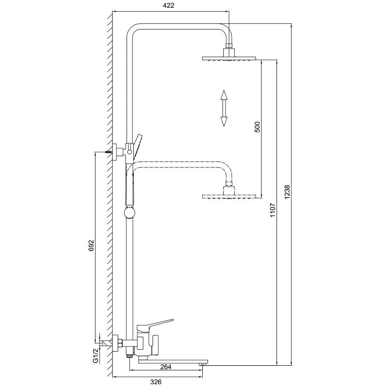 Верхний душ, Держатель для лейки, Душевой шланг, Лейка для душа, Смеситель