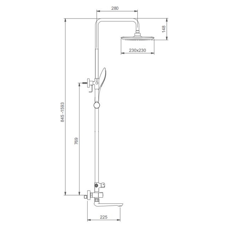 | Комплектация | Верхний душ, Держатель для лейки, Душевой шланг, Лейка для душа, Смеситель |