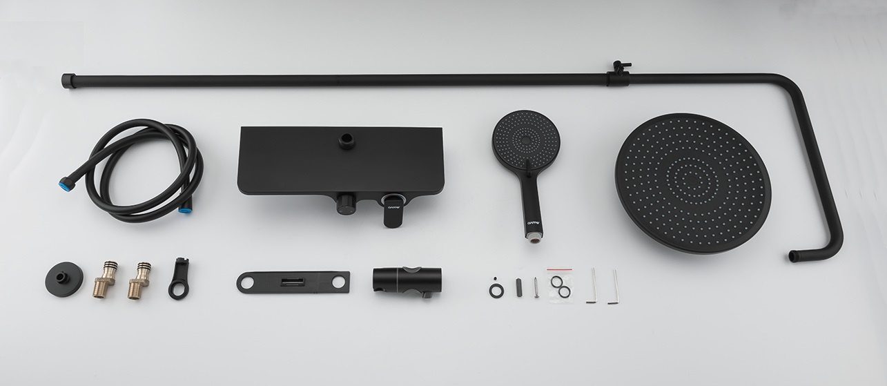 | Комплектация | Лейка для душа, Набор для монтажа, Регулируемый держатель лейки, Смеситель, Стойка для душа, Тропическая лейка, Шланг 1500 мм |