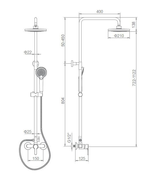 | Комплектация | Монтажный комплект, Душевая стойка, Лейка для душа, Смеситель, Тропическая лейка, Шланг для лейки |