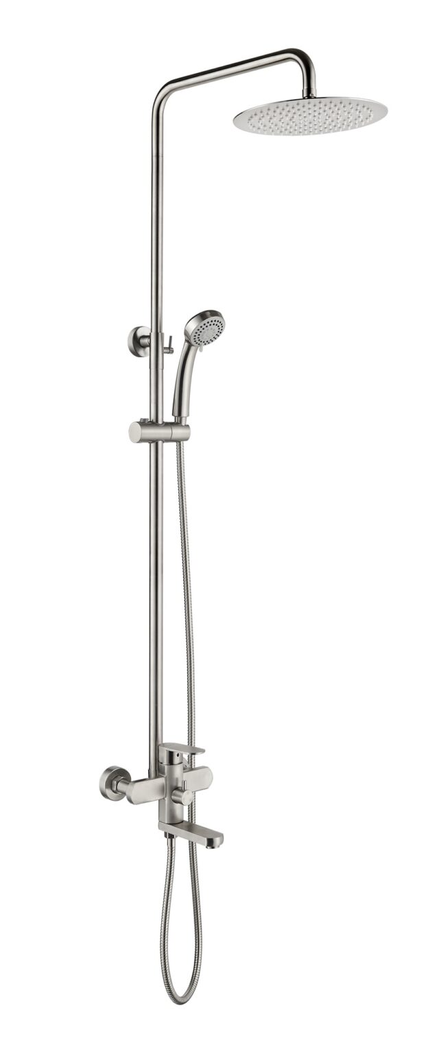 | Комплектация | Смеситель; Стойка для душа; Тропическая лейка; Набор для монтажа; Лейка для душа; Шланг в металлической оплётке 1500 мм; Регулируемый держатель лейки. |