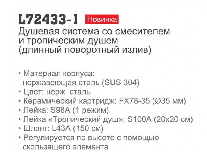 | Гарантийные условия | Запорные механизмы и остальные комплектующие – 3 года, Корпус смесителя – 7 лет |