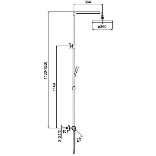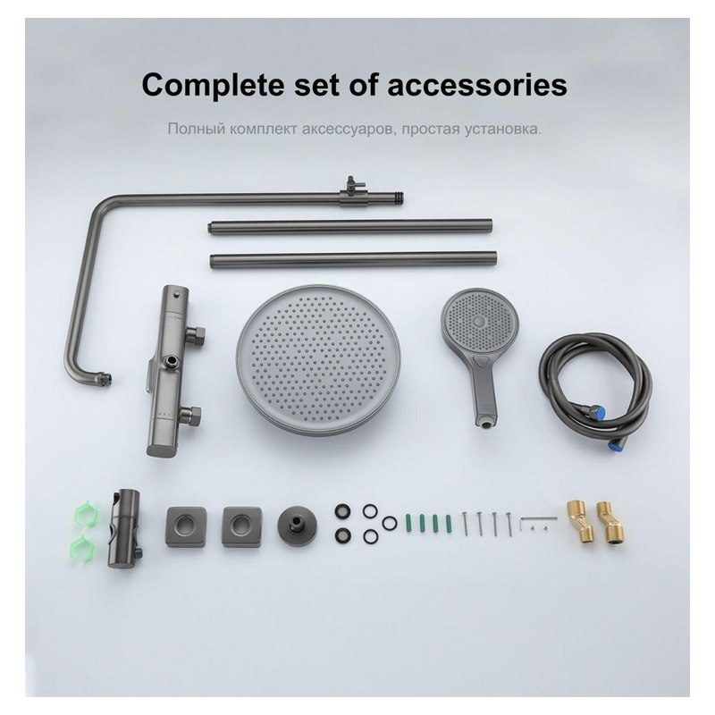 | Комплектация | Лейка для душа, Набор для монтажа, Регулируемый держатель лейки, Смеситель, Стойка для душа, Тропическая лейка, Шланг 1500 мм |