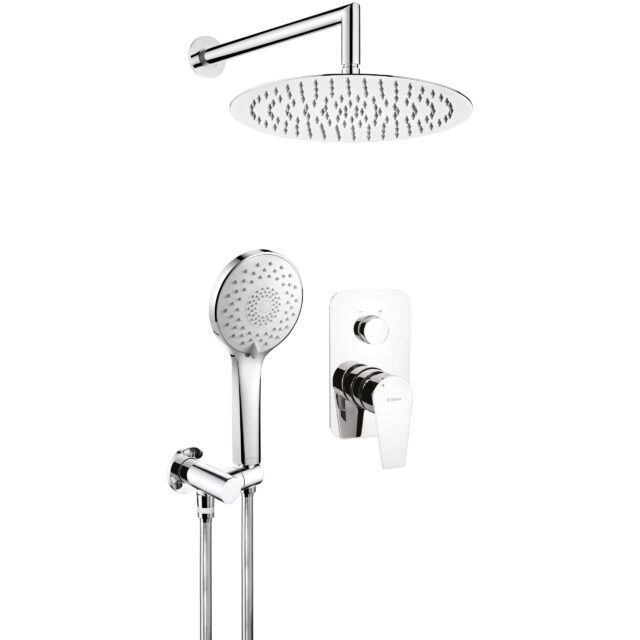 | Комплектация | Верхний душ, Держатель для лейки, Душевой шланг, Кронштейн, Лейка для душа, Смеситель |