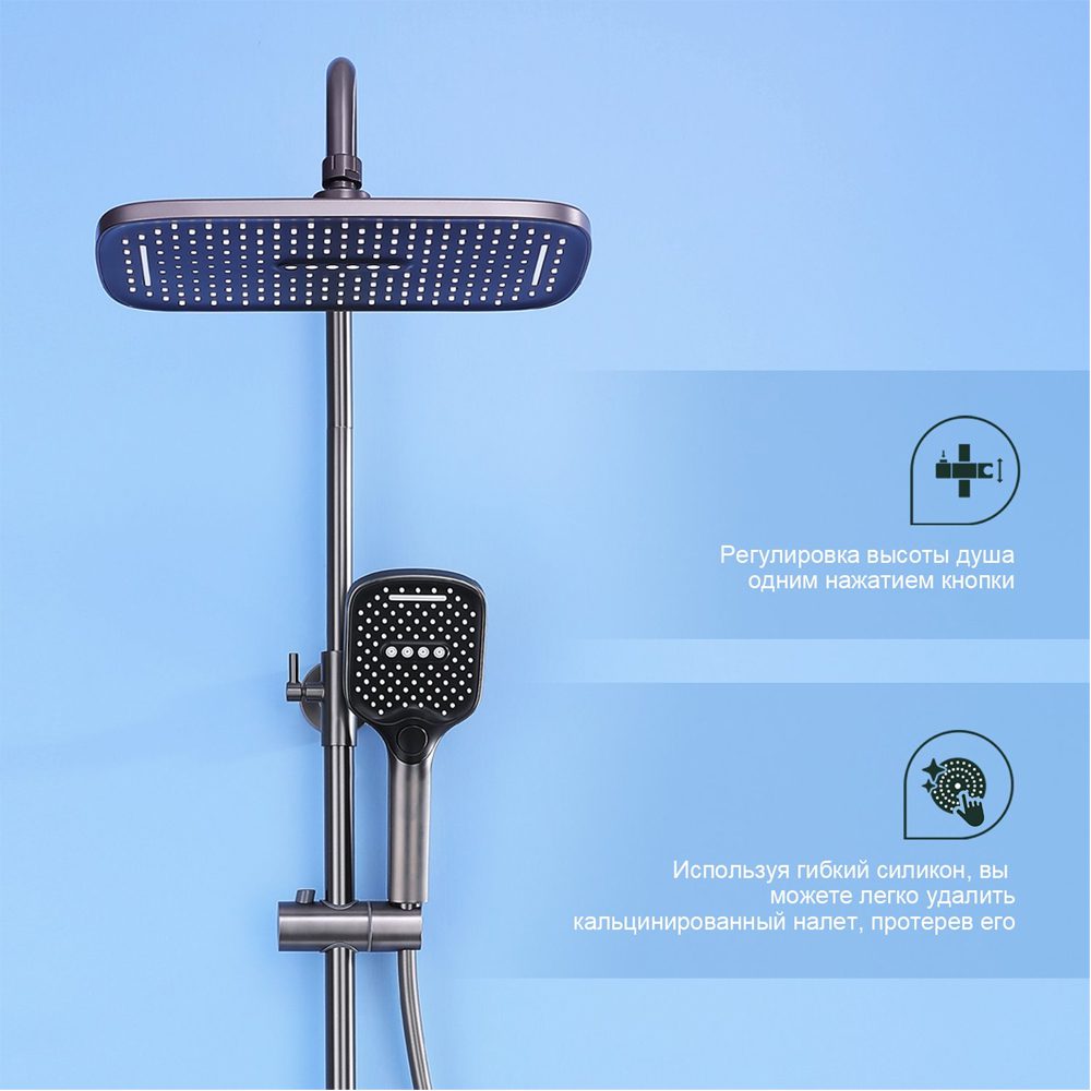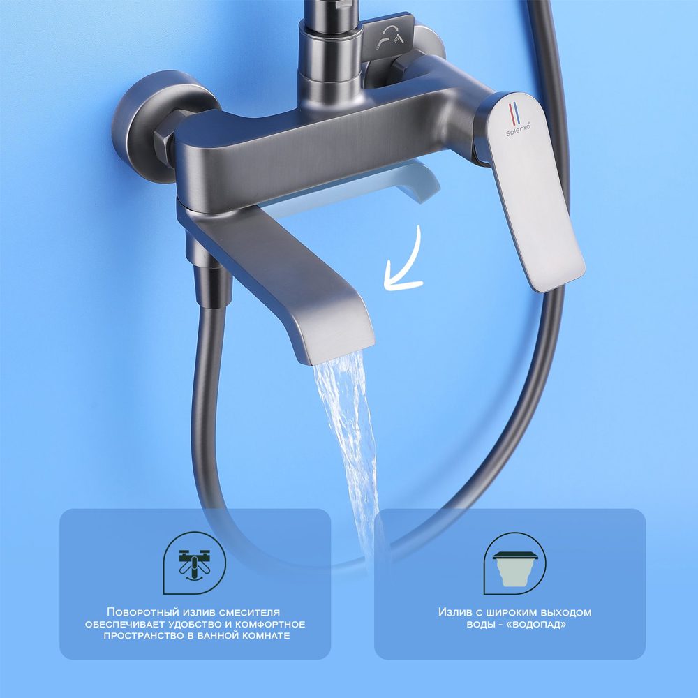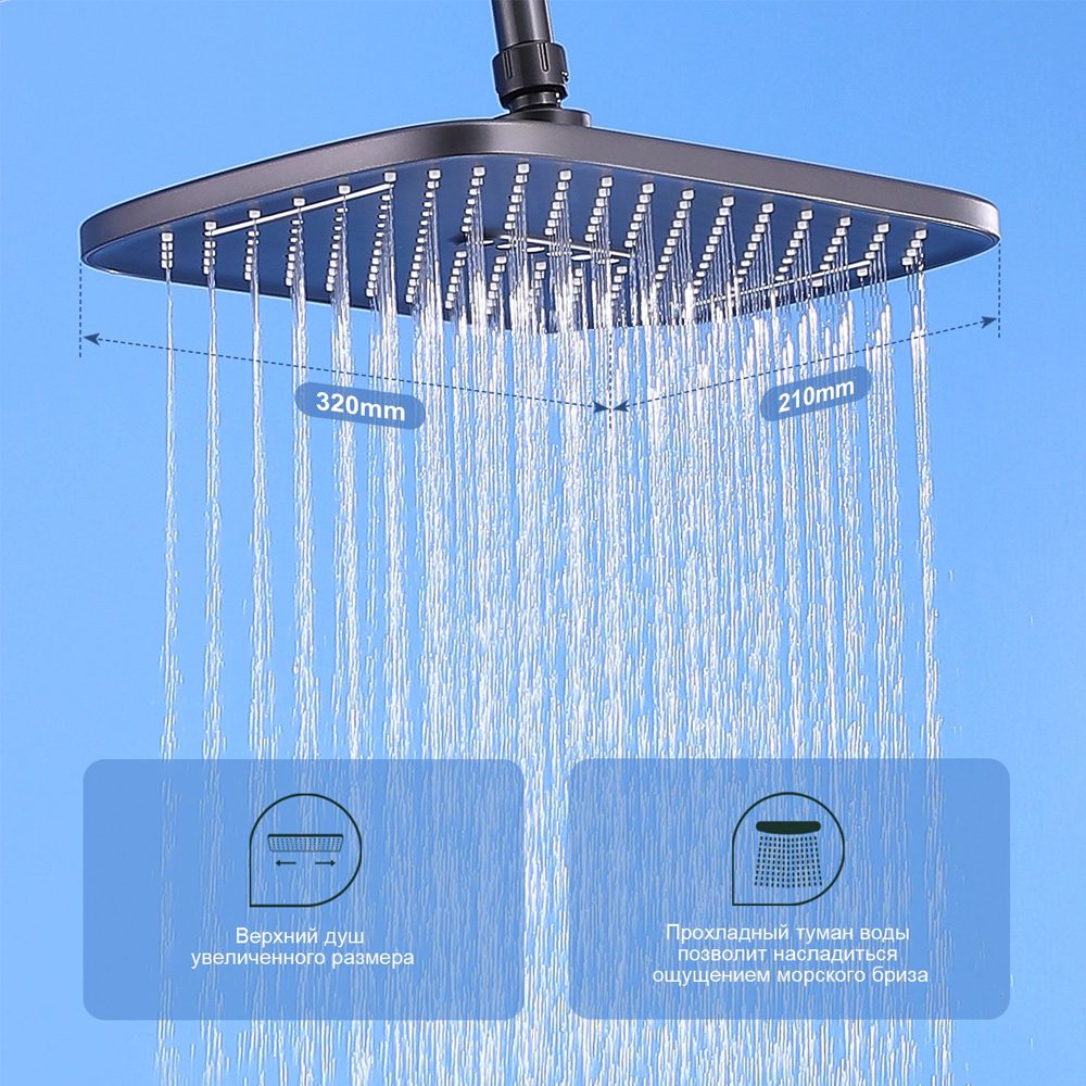 | Комплектация | Верхний душ, Держатель для лейки, Душевой шланг, Лейка для душа, Смеситель |