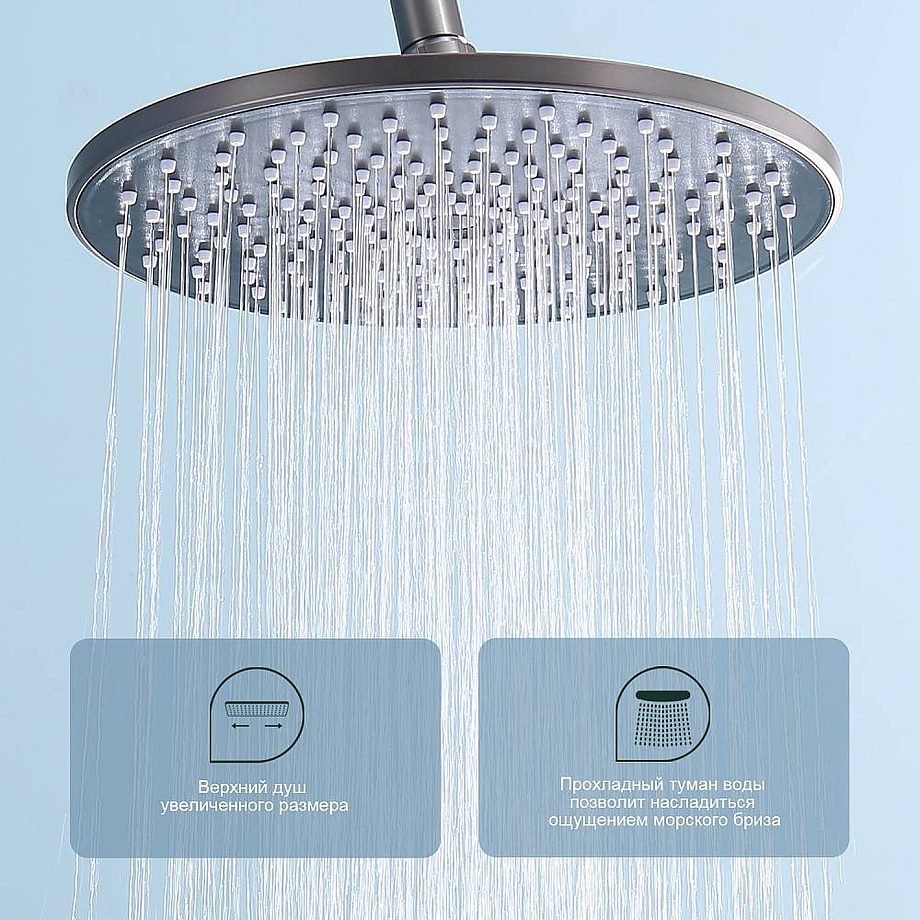 | Комплектация | Верхний душ, Держатель для лейки, Душевой шланг, Лейка для душа, Смеситель |