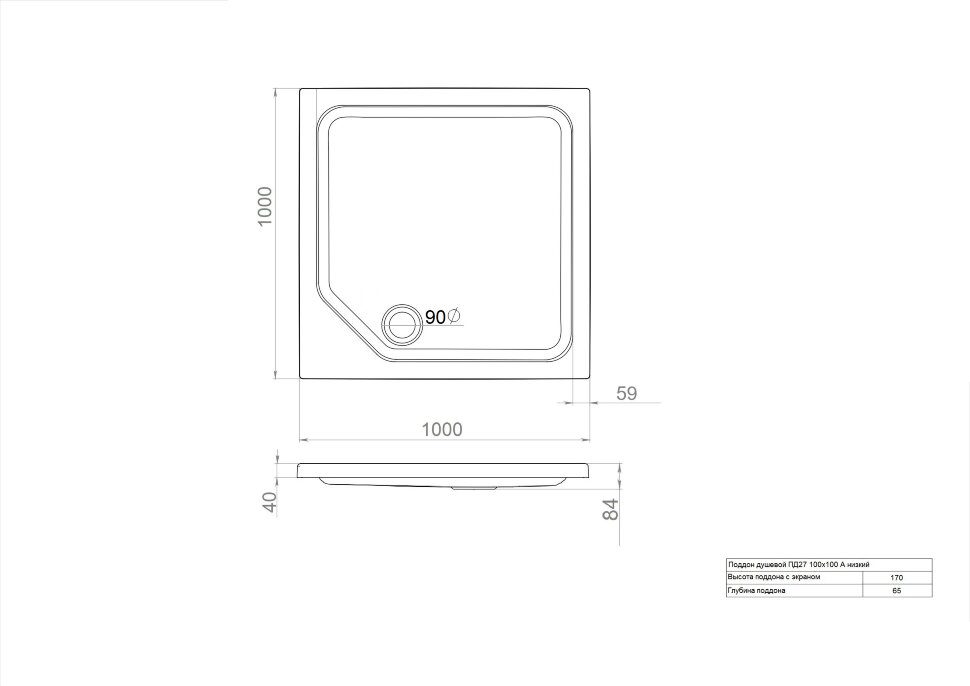 Душевой поддон Тритон ПД27 100*100 низкий (+экран и каркас), Щ0000050808