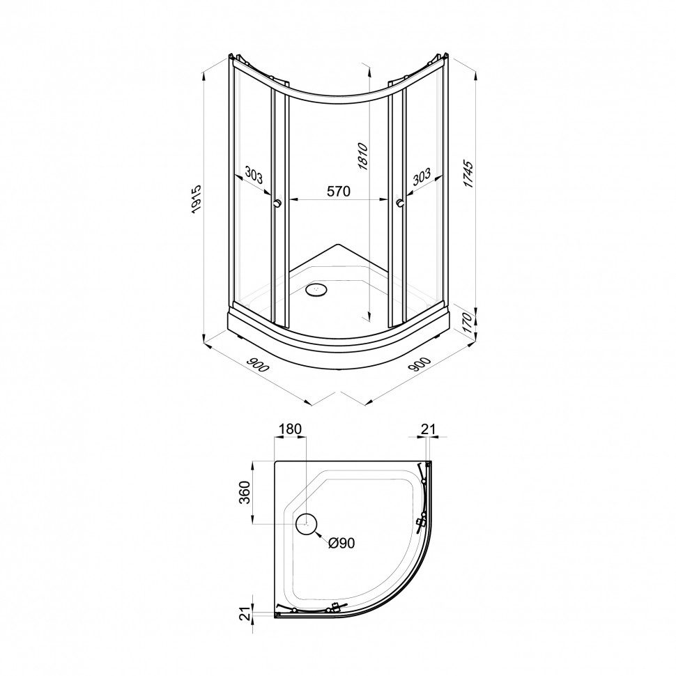 | Комплектация | Душевой поддон, Комплект направляющих, Металлический каркас, Сифон, Стёкла |