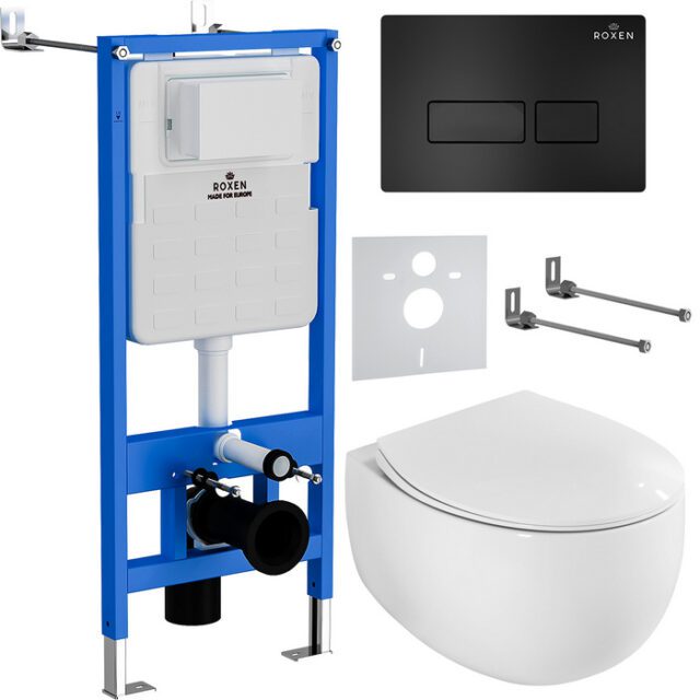 Комплект инсталляции Roxen StounFix Dual Fresh с унитазом EGG и кнопкой Caspia (чёрная/матовая), 964195