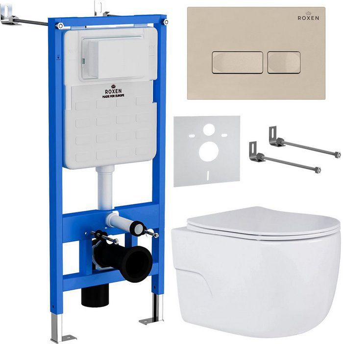 Комплект инсталляции Roxen StounFix Dual Fresh с унитазом Porto и кнопкой Caspia (пастель бежевая/матовая), 966662