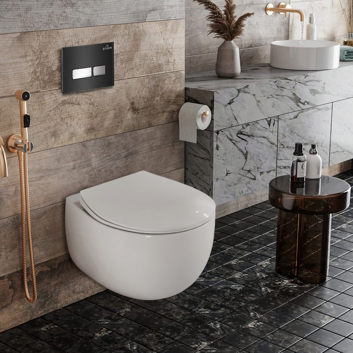 Унитаз Roxen EGG 530170-01 Rimless Soft Close представляет собой сантехническое изделие с инновационным дизайном, оснащенное удобной безободковой чашей Pro-Rimless, что обеспечивает легкость в уборке. Изготовленный из прочного санитарного фарфора Porcelain, унитаз отличается высокой прочностью, белизной, гладкой поверхностью без пор и углублений. Специальное антибактериальное покрытие Ultra Glide облегчает уход за изделием, обеспечивает гигиеничность и сохраняет первоначальный внешний вид на протяжении многих лет. В комплекте с унитазом идет тонкое быстросъемное сиденье с крышкой Soft Close, обеспечивающее плавное закрывание.