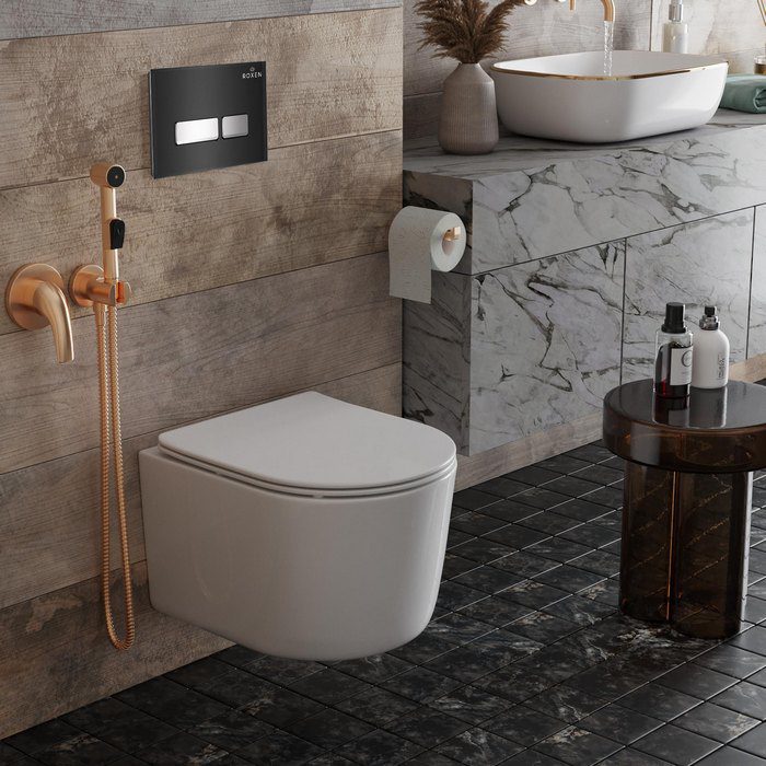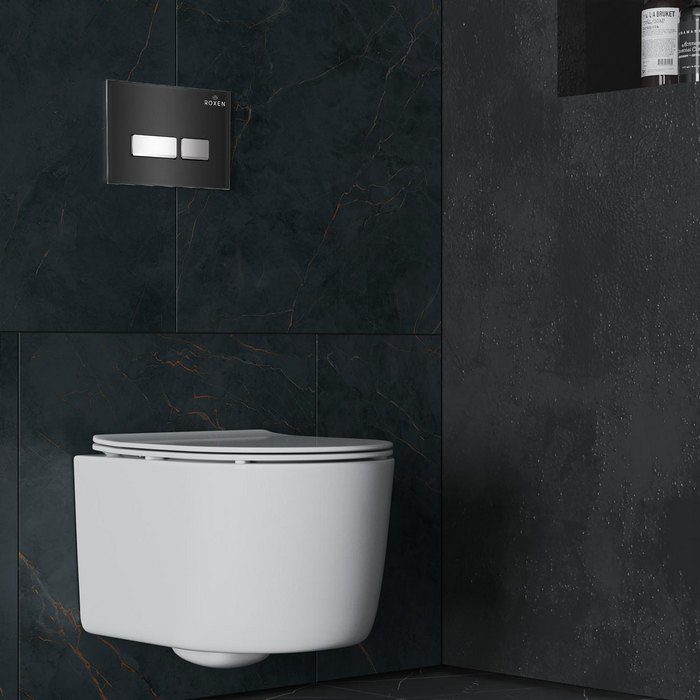 Компактный подвесной унитаз Roxen Simple Compact 530120-01 Rimless Soft Close представляет собой удобную модель с безободковой чашей Pro-Rimless, которая обеспечивает легкость уборки за счет отсутствия труднодоступных зон. Несмотря на миниатюрные габариты, унитаз предлагает увеличенное пространство сиденья, идеально подходящее для небольших ванных комнат. Этот унитаз изготовлен из санитарного фарфора Porcelain, обеспечивая прочность, белизну и гладкую поверхность без пор и углублений. Антибактериальное покрытие Ultra Glide обеспечивает легкий уход, гигиеничность и сохранение первоначального вида на долгие годы. В комплекте поставляется тонкое быстросъемное сиденье с крышкой Soft Close для плавного закрывания. Кроме того, модель оснащена системой антивсплеск, обеспечивающей гигиеничность и удобство использования.