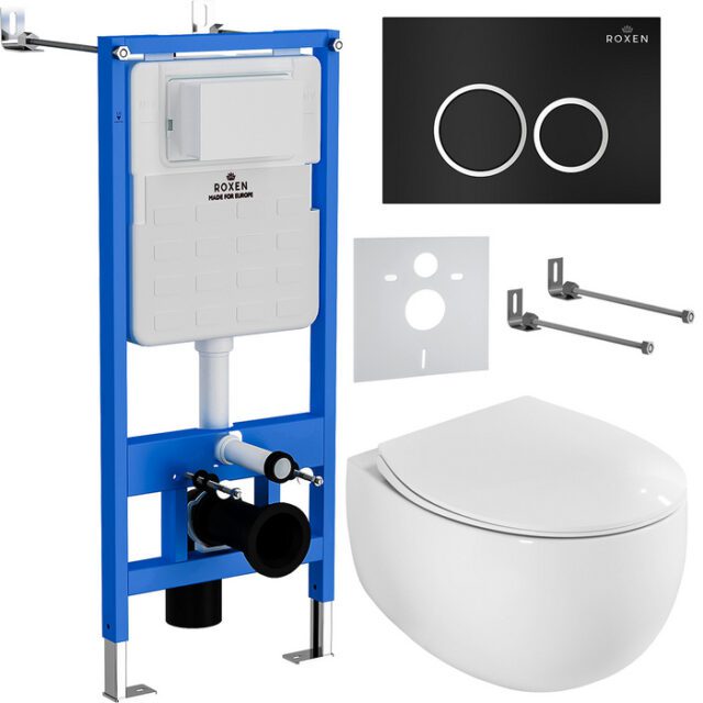 Комплект инсталляции Roxen StounFix Dual Fresh с унитазом EGG и кнопкой Santi (чёрная/матовая), 964010