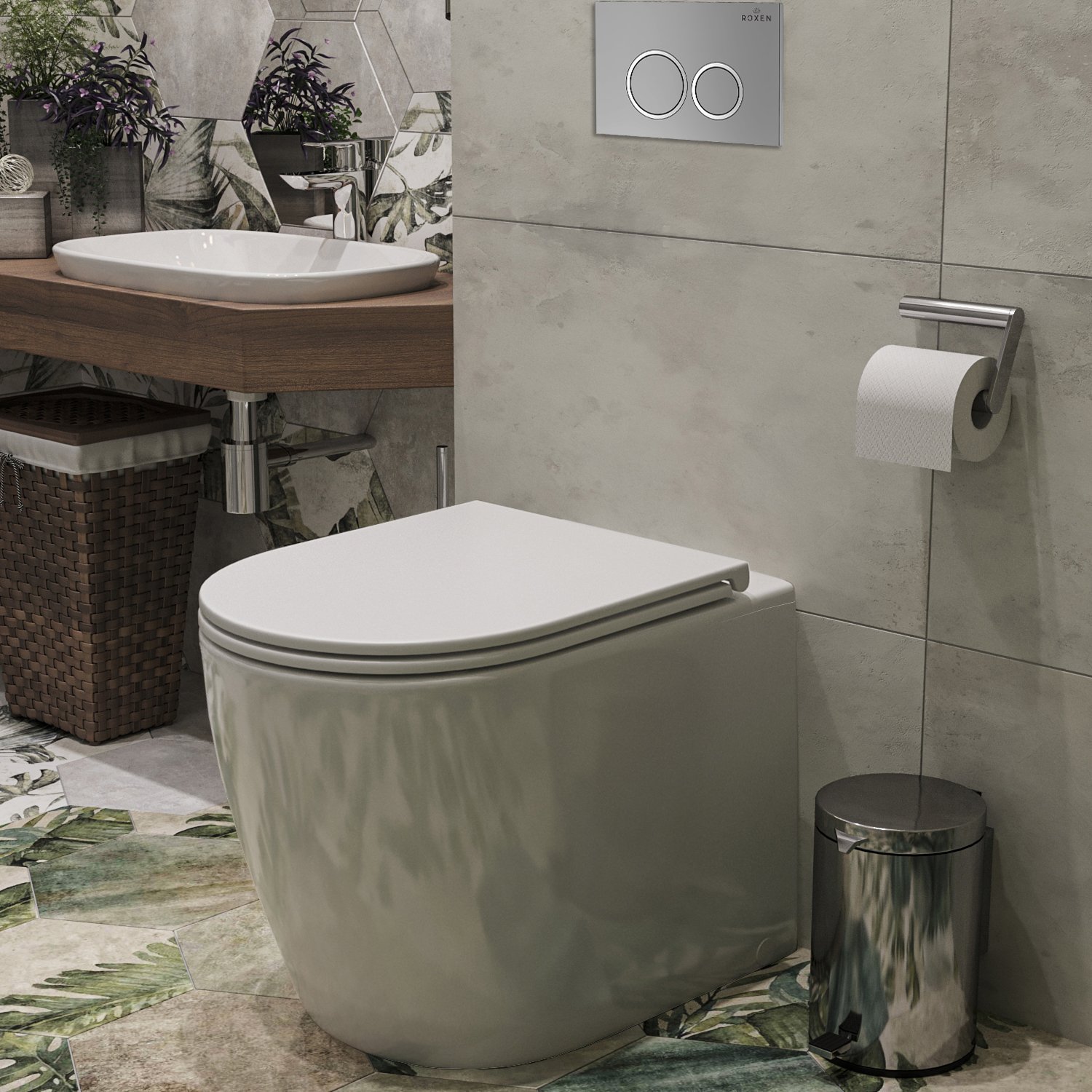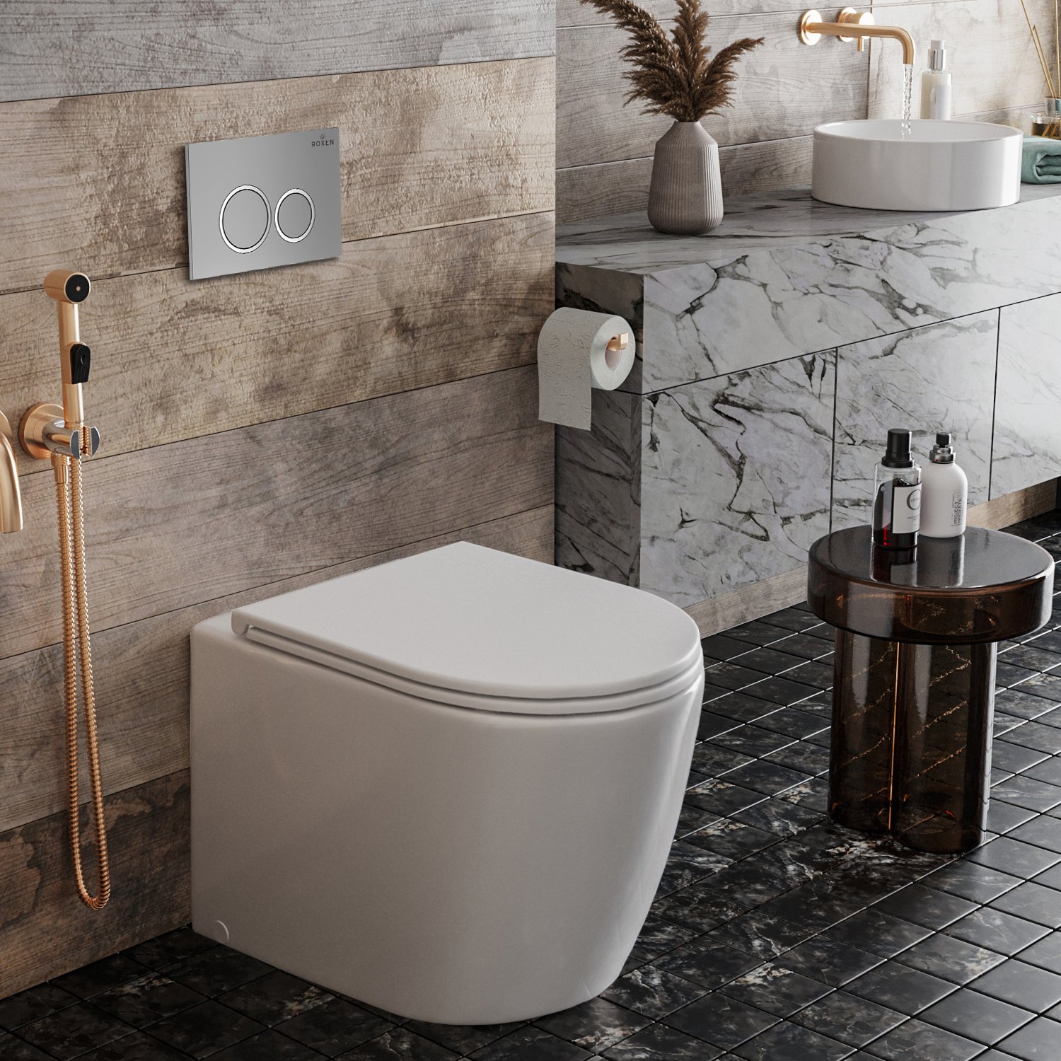 Комплект инсталляции для приставного унитаза Roxen Attach с кнопкой Santi (хром/матовая), 911247