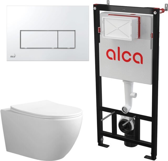 Комплект инсталляции Alca AM101/1120 Sádromodul с унитазом CeruttiSPA ORLTER Aria Tornado и кнопкой Alca M571 (хром/глянец), CT9955+сет(AM101/1120+M571)