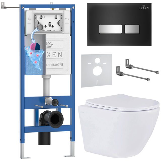 Комплект инсталляции Roxen StounFix Dual Fresh с унитазом Antares и кнопкой Glass (чёрная/глянец), 642915