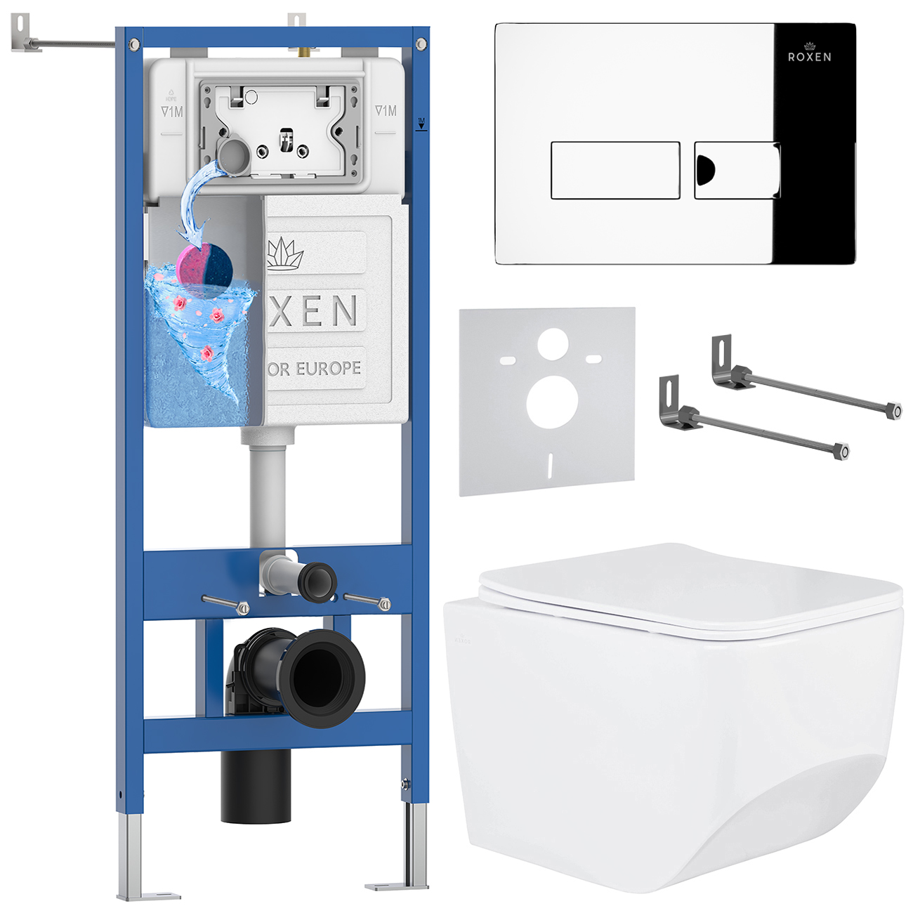 Комплект инсталляции Roxen StounFix Dual Fresh с унитазом Boro и кнопкой Caspia (хром/глянец), 594218