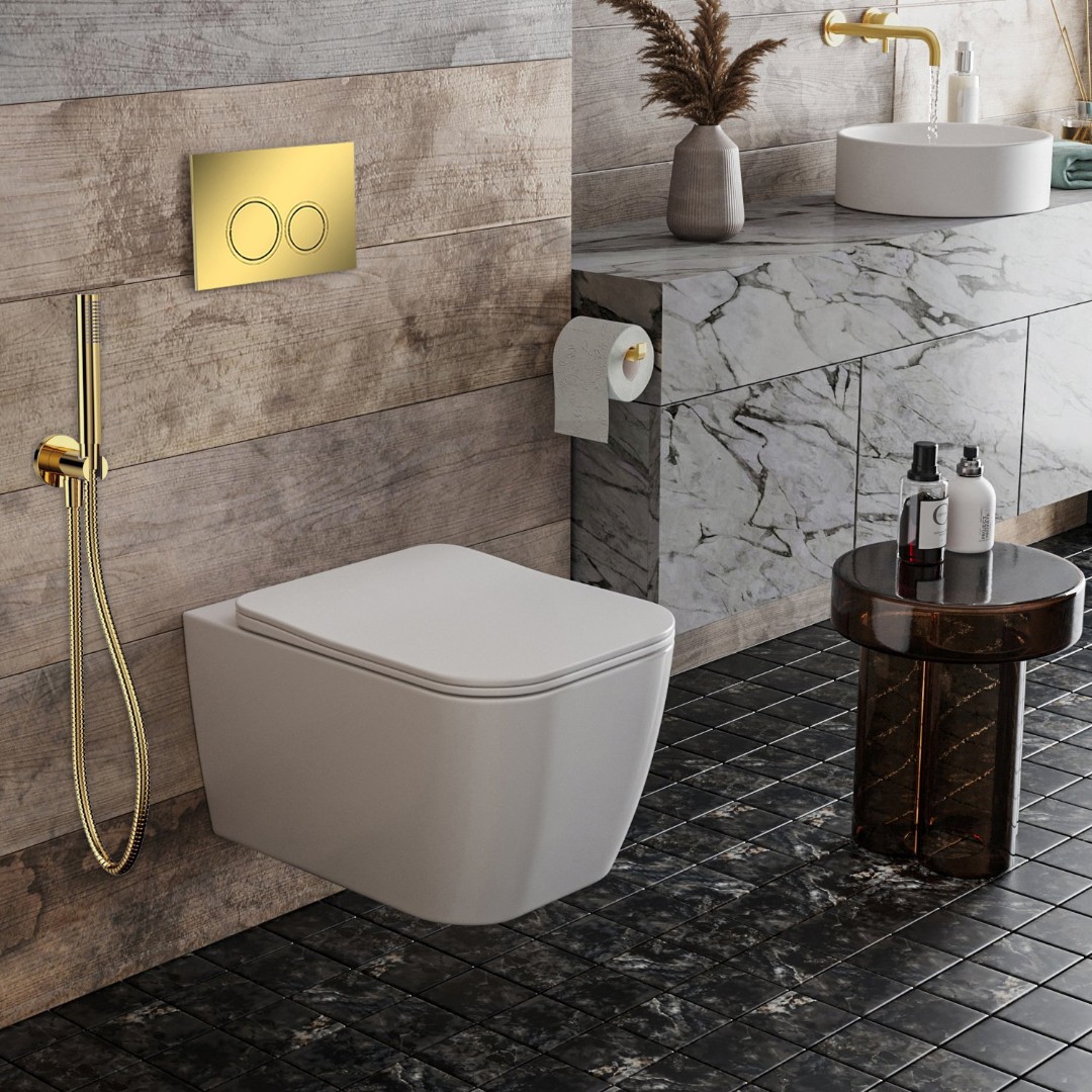 Комплект инсталляции Roxen StounFix Dual Fresh с унитазом Cube и кнопкой Caspia (золото/матовая), 968065