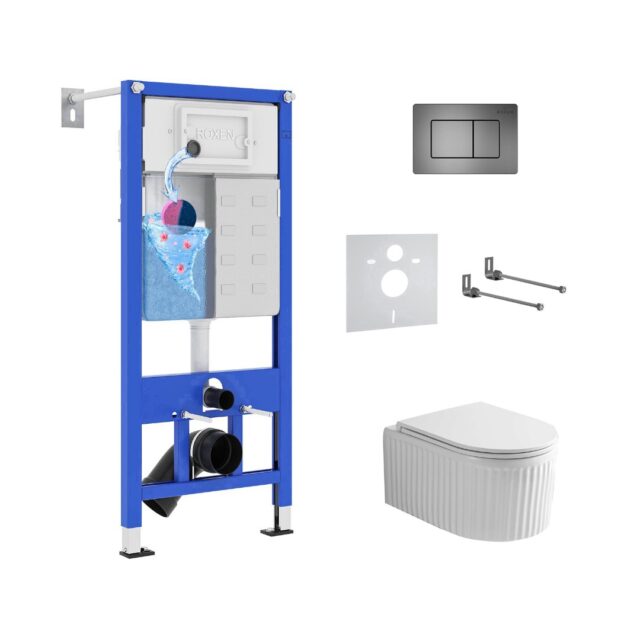 Комплект инсталляции Roxen StounFix Dual Fresh с унитазом Royal Matt и кнопкой Steel (оружейная сталь), 968290