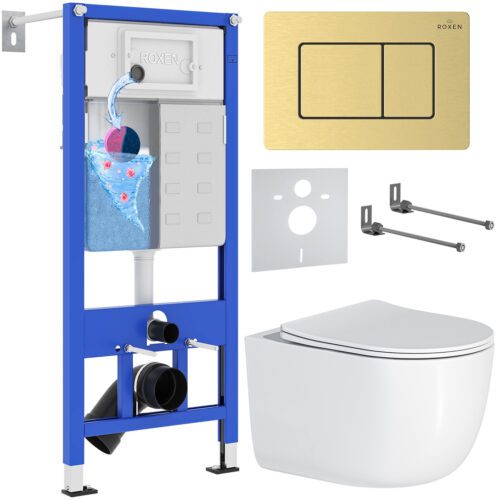 Комплект инсталляции Roxen StounFix Dual Fresh с унитазом Vortex и кнопкой Steel (золото/матовая), 968483