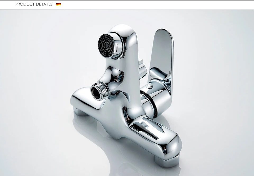 Этот набор состоит из трех предметов: смеситель для ванной, смеситель на умывальник и душевая стойка. Комплект также включает в себя шланг для подключения душевой лейки, душевую лейку с пятью режимами, полный комплект для подключения к водопроводу и установке.