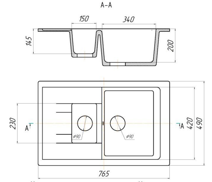 | Длина мойки, см | 49 |