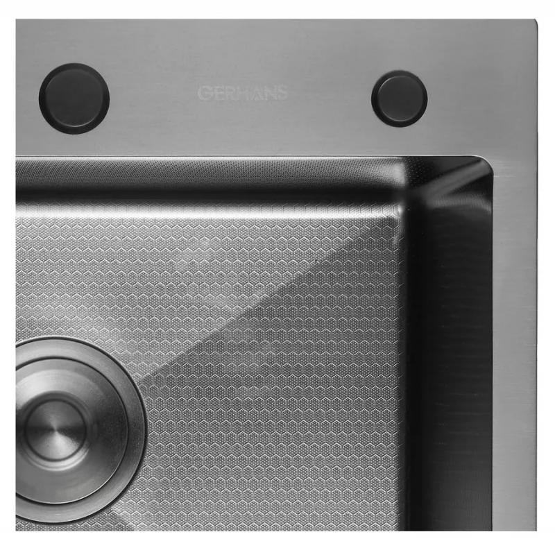 Кухонная мойка Gerhans изготовлена из нержавеющей стали марки SUS304 с различной толщиной стенок – от 1 мм до 3 мм. Этот материал имеет уникальный химический состав и свойства, которые делают его идеальным для использования в пищевой промышленности. Нержавеющая сталь SUS304 обладает высокой устойчивостью к коррозии в агрессивных условиях, что гарантирует долговечность и надежность мойки. Мойка Gerhans K35050BD покрыта декоративным PVD-покрытием. Это современный и эффективный способ обработки металлической поверхности. Оно обеспечивает прочное и устойчивое соединение материала покрытия с молекулярной структурой металла, что делает мойку долговечной, легкой в уходе и устойчивой к повреждениям и загрязнениям.