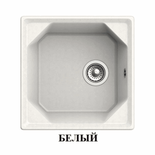 Мойка из искусственного камня (литьевой мрамор), врезная, квадратная, сифон в комплекте.