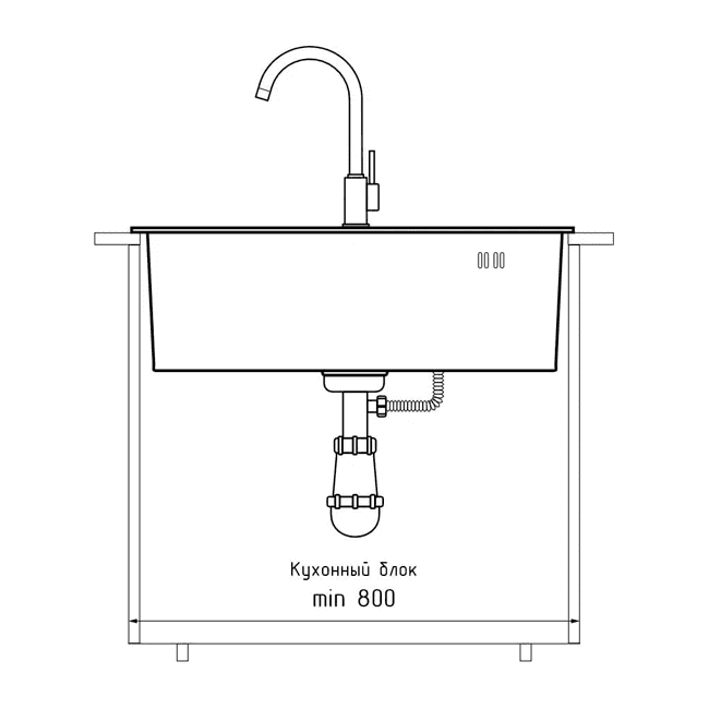 Покрытие мойки устойчиво к истиранию, а технологичный рельеф дна с уклоном к сливному отверстию способствует ускорению стекания воды.