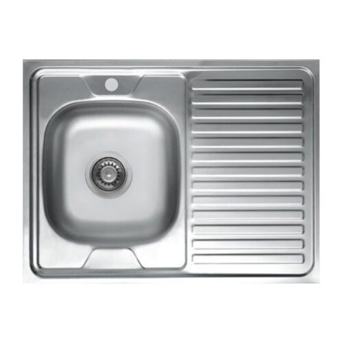 Кухонная мойка Kromevye EC 220 D – стальная модель с квадратной чашей и широким рельефным крылом, предназначенная для накладного монтажа. Изготовлена из стали 304 толщиной 0.6 мм, поверхность матовая. Диаметр сливного отверстия – 3 1/2″.