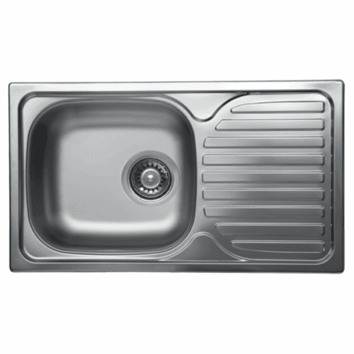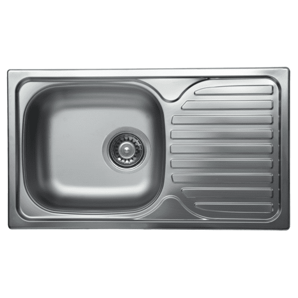 Мойка из нержавеющей стали, врезная, прямоугольная, с выпуском 3 1/2″, без сифона.