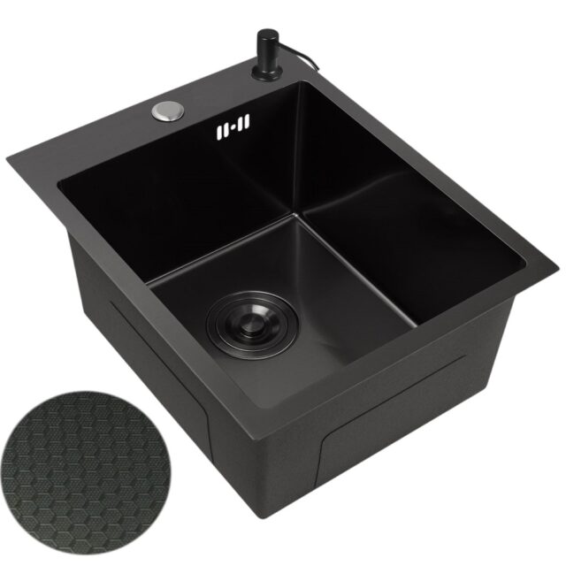 Графитовый цвет мойки идеально сочетается с различными стилями интерьера. Она будет прекрасно смотреться как в классических, так и в современных кухнях. Декорированная текстура поверхности создаёт уникальный визуальный эффект, который привлечёт внимание ваших гостей.