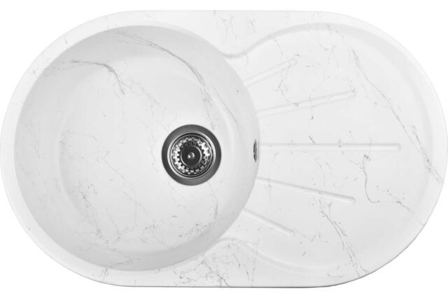 Новая коллекция каменных моек WISENT с расцветками под мрамор представляет собой стильные и функциональные решения для вашей кухни, которые способны преобразить любой интерьер и добавить ему изысканности. Мойки доступны в различных оттенках, имитирующих различные виды мрамора, от классического белого до более экзотических цветов, таких как черный или серый мрамор. Это позволяет подобрать мойку, которая идеально сочетается с интерьером вашей кухни и соответствует вашим предпочтениям. ВАЖНО! Каждая прожилка создана индивидуально, делая каждую мойку уникальной и неповторимой. Элегантная овальная мойка с крылом и круглой чашей позволит разместить большое количество грязной и чистой посуды. Желоба для слива воды в форме лучей солнца обеспечивают равномерный слив со всей площадки для сушки. Раковина изготовлена из композитного материала “Искусственный гранит” Состав материала: 80% гранитно-мраморная крошка, 20% полимерные связующие. Данная смесь природных материалов позволяет достичь максимальной прочности моек, их износостойкости и долговечности. Исполнение врезной раковины оборачиваемое. Мойка может устанавливаться крылом как в левую, так и в правую сторону. Отметки для высверливания отверстия намечены с обратной стороны мойки. Отверстие рекомендуется делать алмазной коронкой Ø35 мм.
