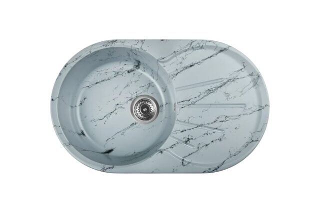 Новая коллекция каменных моек WISENT с расцветками под мрамор представляет собой стильные и функциональные решения для вашей кухни, которые способны преобразить любой интерьер и добавить ему изысканности. Мойки доступны в различных оттенках, имитирующих различные виды мрамора, от классического белого до более экзотических цветов, таких как черный или серый мрамор. Это позволяет подобрать мойку, которая идеально сочетается с интерьером вашей кухни и соответствует вашим предпочтениям. ВАЖНО! Каждая прожилка создана индивидуально, делая каждую мойку уникальной и неповторимой. Элегантная овальная мойка с крылом и круглой чашей позволит разместить большое количество грязной и чистой посуды. Желоба для слива воды в форме лучей солнца обеспечивают равномерный слив со всей площадки для сушки. Раковина изготовлена из композитного материала “Искусственный гранит” Состав материала: 80% гранитно-мраморная крошка, 20% полимерные связующие. Данная смесь природных материалов позволяет достичь максимальной прочности моек, их износостойкости и долговечности. Исполнение врезной раковины оборачиваемое. Мойка может устанавливаться крылом как в левую, так и в правую сторону. Отметки для высверливания отверстия намечены с обратной стороны мойки. Отверстие рекомендуется делать алмазной коронкой Ø35 мм.