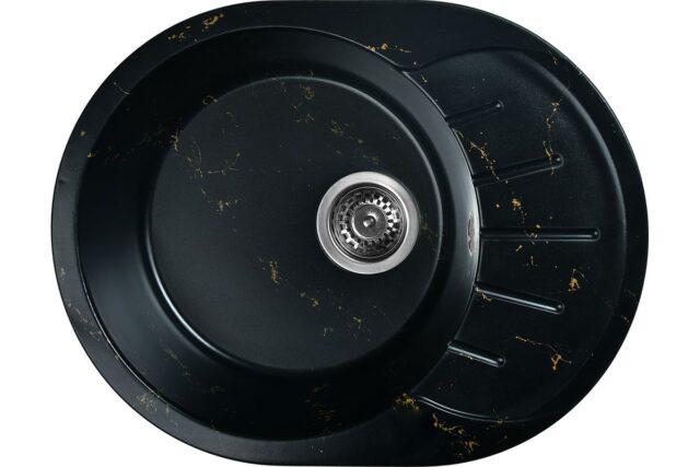 Новая коллекция каменных моек WISENT с расцветками под мрамор представляет собой стильные и функциональные решения для вашей кухни, которые способны преобразить любой интерьер и добавить ему изысканности. Мойки доступны в различных оттенках, имитирующих различные виды мрамора, от классического белого до более экзотических цветов, таких как черный или серый мрамор. Это позволяет подобрать мойку, которая идеально сочетается с интерьером вашей кухни и соответствует вашим предпочтениям. ВАЖНО! Каждая прожилка создана индивидуально, делая каждую мойку уникальной и неповторимой. Глубокая каменная мойка WISENT WA03-14 выполнена в красивом сочетании чёрного цвета с золотыми тонкими прожилками. Компактная овальная мойка с крылом для сушки посуды идеальна для маленьких кухонь с ограниченным пространством. Сочетание глубокой чаши и рельефного крыла обеспечивают слив воды с площадки для мокрой посуды. Раковина изготовлена из композитного материала “Искусственный гранит” Состав материала: 80% гранитно-мраморная крошка, 20% полимерные связующие. Данная смесь природных материалов позволяет достичь максимальной прочности моек, их износостойкости и долговечности. Исполнение врезной раковины оборачиваемое. Мойка может устанавливаться крылом как в левую, так и в правую сторону. Отметки для высверливания отверстия намечены с обратной стороны мойки. Отверстие рекомендуется делать алмазной коронкой Ø35 мм.