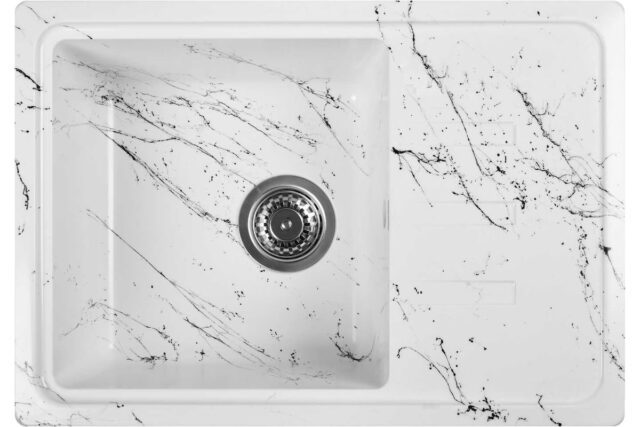 Новая коллекция каменных моек WISENT с расцветками под мрамор представляет собой стильные и функциональные решения для вашей кухни, которые способны преобразить любой интерьер и добавить ему изысканности. Мойки доступны в различных оттенках, имитирующих различные виды мрамора, от классического белого до более экзотических цветов, таких как черный или серый мрамор. Это позволяет подобрать мойку, которая идеально сочетается с интерьером вашей кухни и соответствует вашим предпочтениям. ВАЖНО! Каждая прожилка создана индивидуально, делая каждую мойку уникальной и неповторимой. Раковина изготовлена из композитного материала “Искусственный гранит” Состав материала: 80% гранитно-мраморная крошка, 20% полимерные связующие. Данная смесь природных материалов позволяет достичь максимальной прочности моек, их износостойкости и долговечности. Исполнение врезной раковины оборачиваемое. Мойка может устанавливаться крылом как в левую, так и в правую сторону. Отметки для высверливания отверстия намечены с обратной стороны мойки. Отверстие рекомендуется делать алмазной коронкой Ø35 мм.