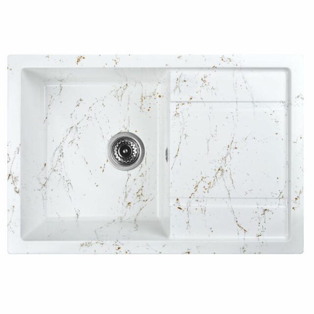 Новая коллекция каменных моек WISENT с расцветками под мрамор представляет собой стильные и функциональные решения для вашей кухни, которые способны преобразить любой интерьер и добавить ему изысканности. Мойки доступны в различных оттенках, имитирующих различные виды мрамора, от классического белого до более экзотических цветов, таких как черный или серый мрамор. Это позволяет подобрать мойку, которая идеально сочетается с интерьером вашей кухни и соответствует вашим предпочтениям. ВАЖНО! Каждая прожилка создана индивидуально, делая каждую мойку уникальной и неповторимой. Раковина изготовлена из композитного материала “Искусственный гранит” Состав материала: 80% гранитно-мраморная крошка, 20% полимерные связующие. Данная смесь природных материалов позволяет достичь максимальной прочности моек, их износостойкости и долговечности. Исполнение врезной раковины оборачиваемое. Мойка может устанавливаться крылом как в левую, так и в правую сторону. Отметки для высверливания отверстия намечены с обратной стороны мойки. Отверстие рекомендуется делать алмазной коронкой Ø35 мм.