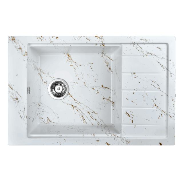 Новая коллекция каменных моек WISENT с расцветками под мрамор представляет собой стильные и функциональные решения для вашей кухни, которые способны преобразить любой интерьер и добавить ему изысканности. Мойки доступны в различных оттенках, имитирующих различные виды мрамора, от классического белого до более экзотических цветов, таких как черный или серый мрамор. Это позволяет подобрать мойку, которая идеально сочетается с интерьером вашей кухни и соответствует вашим предпочтениям. ВАЖНО! Каждая прожилка создана индивидуально, делая каждую мойку уникальной и неповторимой. Раковина изготовлена из композитного материала “Искусственный гранит” Состав материала: 80% гранитно-мраморная крошка, 20% полимерные связующие. Данная смесь природных материалов позволяет достичь максимальной прочности моек, их износостойкости и долговечности. Исполнение врезной раковины оборачиваемое. Мойка может устанавливаться крылом как в левую, так и в правую сторону. Отметки для высверливания отверстия намечены с обратной стороны мойки. Отверстие рекомендуется делать алмазной коронкой Ø35 мм.