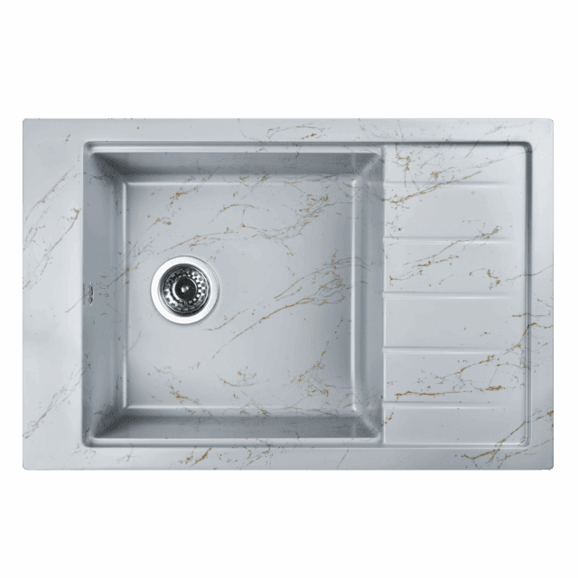 Новая коллекция каменных моек WISENT с расцветками под мрамор представляет собой стильные и функциональные решения для вашей кухни, которые способны преобразить любой интерьер и добавить ему изысканности. Мойки доступны в различных оттенках, имитирующих различные виды мрамора, от классического белого до более экзотических цветов, таких как черный или серый мрамор. Это позволяет подобрать мойку, которая идеально сочетается с интерьером вашей кухни и соответствует вашим предпочтениям. ВАЖНО! Каждая прожилка создана индивидуально, делая каждую мойку уникальной и неповторимой. Раковина изготовлена из композитного материала “Искусственный гранит” Состав материала: 80% гранитно-мраморная крошка, 20% полимерные связующие. Данная смесь природных материалов позволяет достичь максимальной прочности моек, их износостойкости и долговечности. Исполнение врезной раковины оборачиваемое. Мойка может устанавливаться крылом как в левую, так и в правую сторону. Отметки для высверливания отверстия намечены с обратной стороны мойки. Отверстие рекомендуется делать алмазной коронкой Ø35 мм.