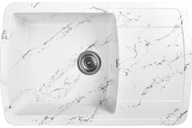 Новая коллекция каменных моек WISENT с расцветками под мрамор представляет собой стильные и функциональные решения для вашей кухни, которые способны преобразить любой интерьер и добавить ему изысканности. Мойки доступны в различных оттенках, имитирующих различные виды мрамора, от классического белого до более экзотических цветов, таких как черный или серый мрамор. Это позволяет подобрать мойку, которая идеально сочетается с интерьером вашей кухни и соответствует вашим предпочтениям. ВАЖНО! Каждая прожилка создана индивидуально, делая каждую мойку уникальной и неповторимой. Раковина изготовлена из композитного материала “Искусственный гранит” Состав материала: 80% гранитно-мраморная крошка, 20% полимерные связующие. Данная смесь природных материалов позволяет достичь максимальной прочности моек, их износостойкости и долговечности. Исполнение врезной раковины оборачиваемое. Мойка может устанавливаться крылом как в левую, так и в правую сторону. Отметки для высверливания отверстия намечены с обратной стороны мойки. Отверстие рекомендуется делать алмазной коронкой Ø35 мм.