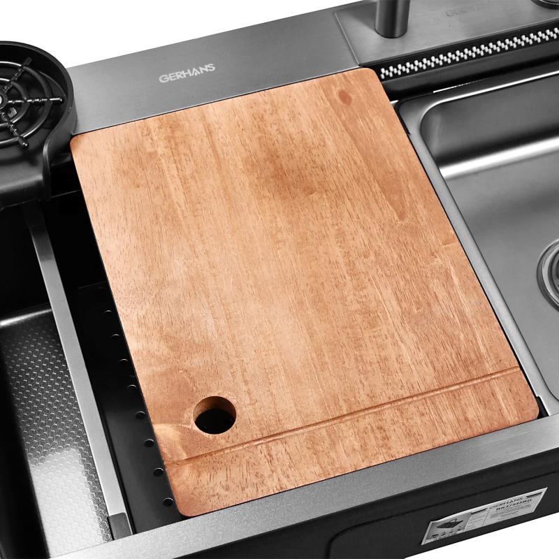 Многофункциональная мойка для кухни Gerhans изготовлена из нержавеющей стали SUS304 Толщина стенки мойки составляет 1 мм, толщина бортика 3 мм. Химический состав и свойства делают 304 марку стали наиболее подходящей для применения в пищевой промышленности. Она показывает высокие характеристики коррозийной стойкости в агрессивных средах.