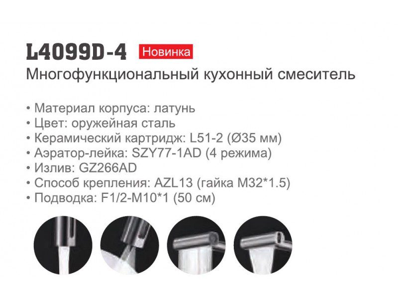 Многофункциональный смеситель для кухни Ledeme L4099D-4, оружейная сталь