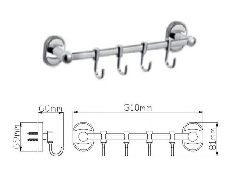 Планка с крючками Wisent WP2815-4